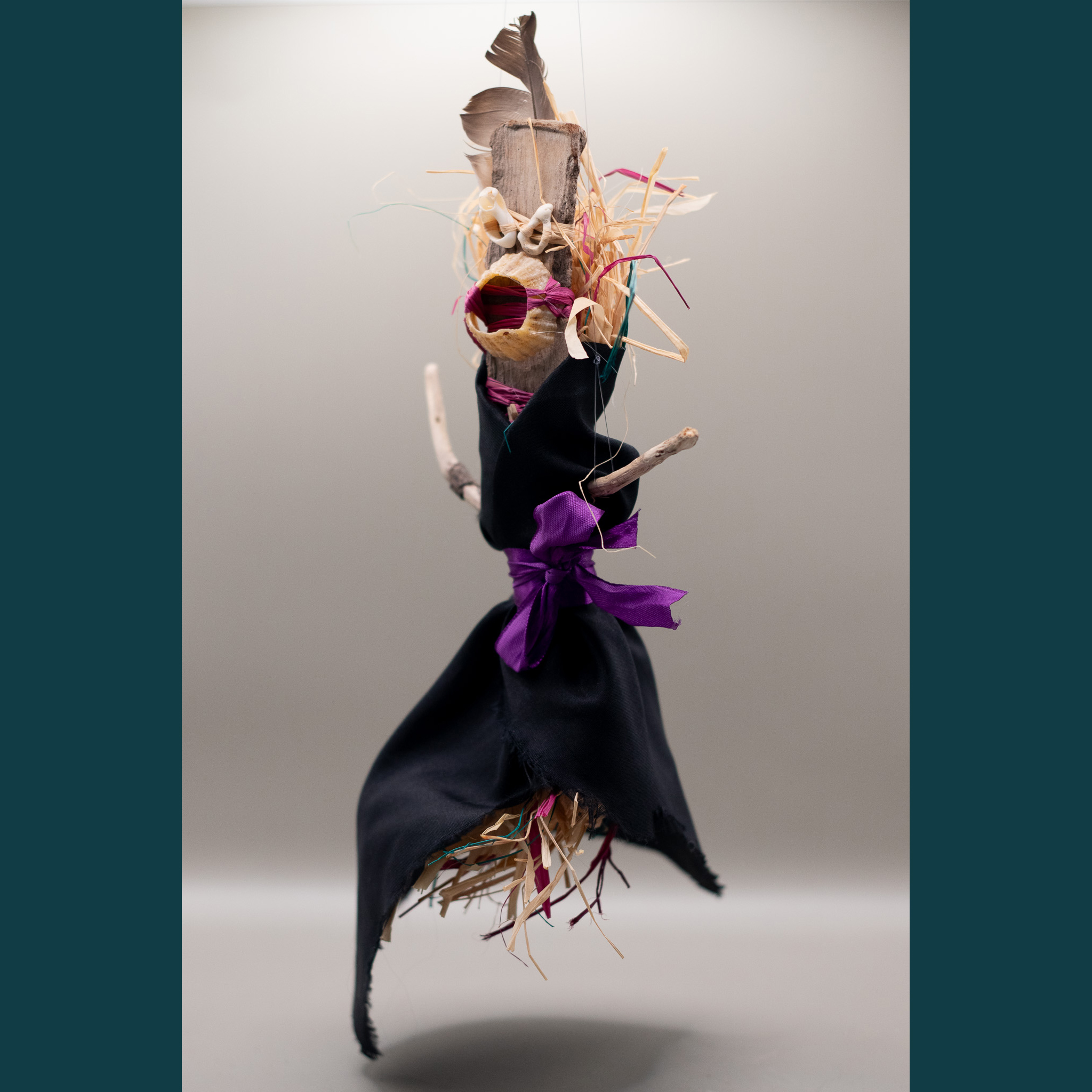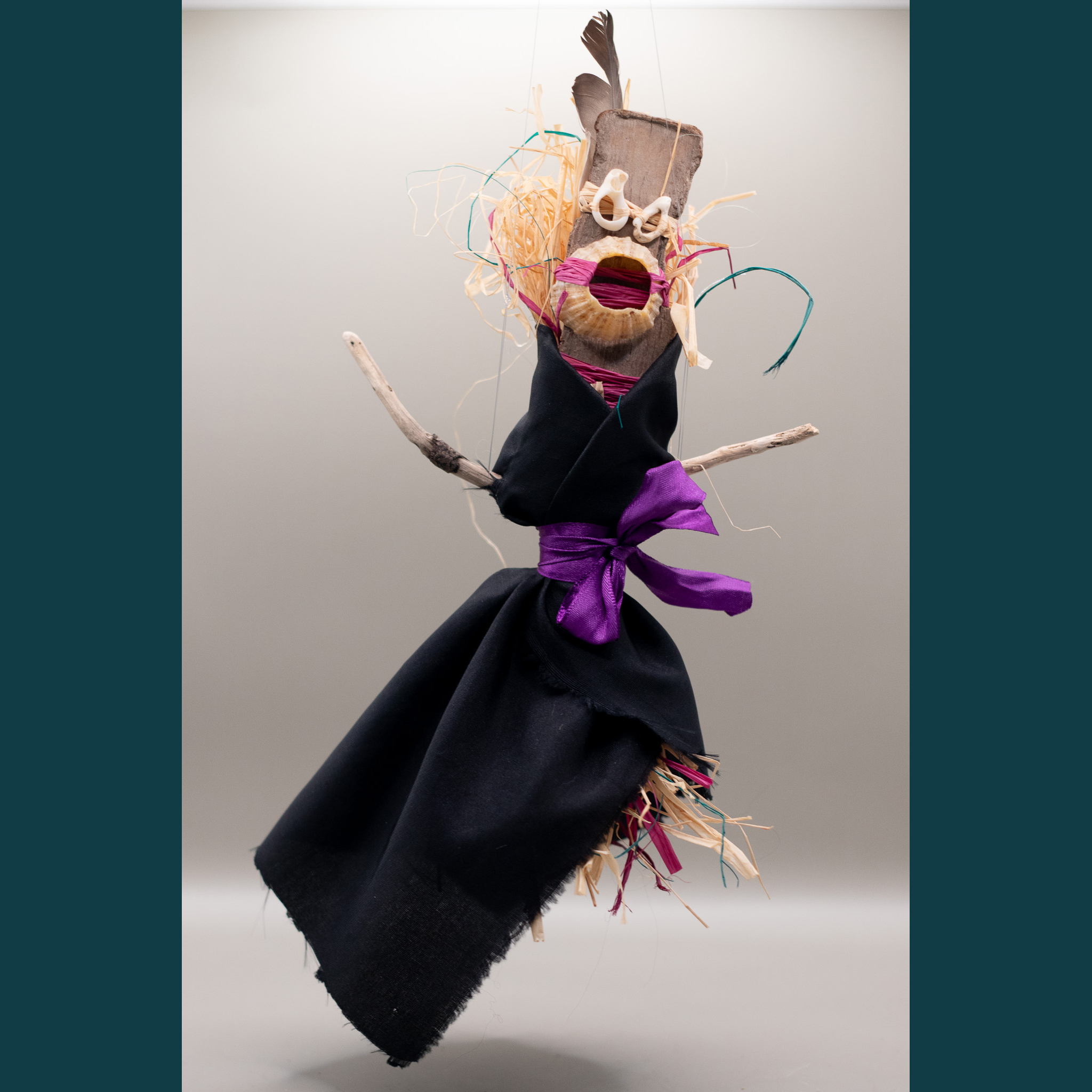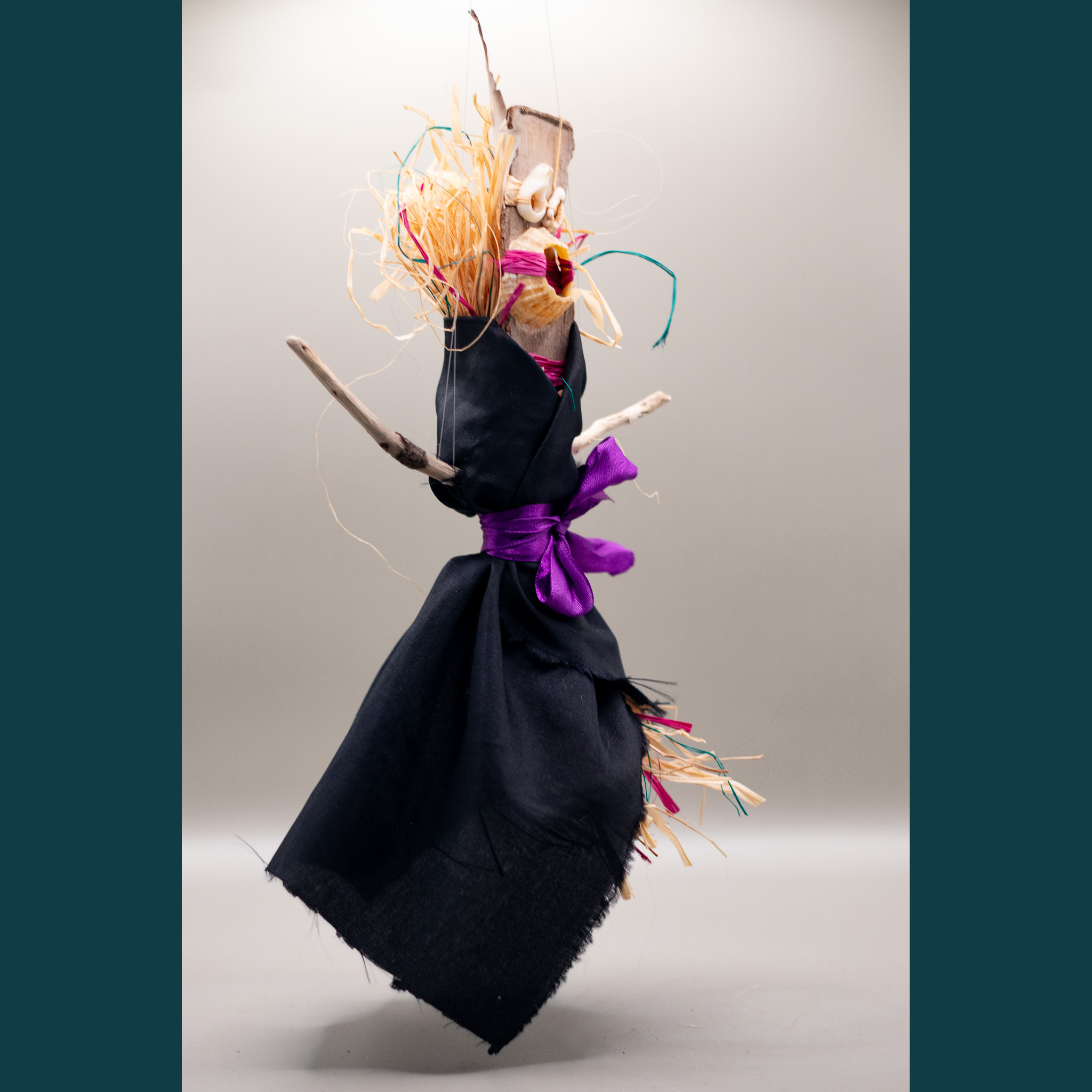 Bois flotté,  tissus, ficelles, raphia, coquillages, perles…