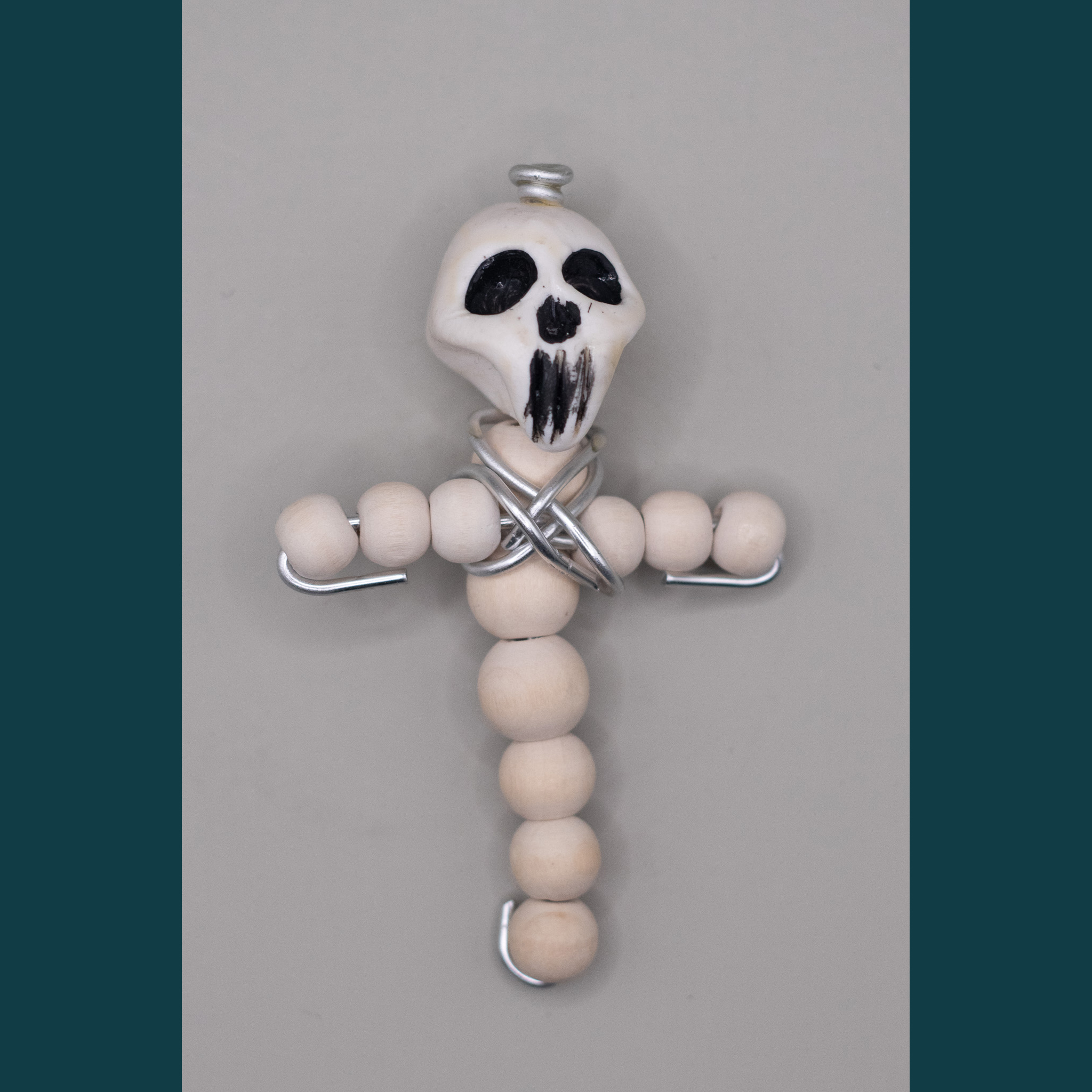Pâte fimo, peinture acrylique, fil métal, perles
