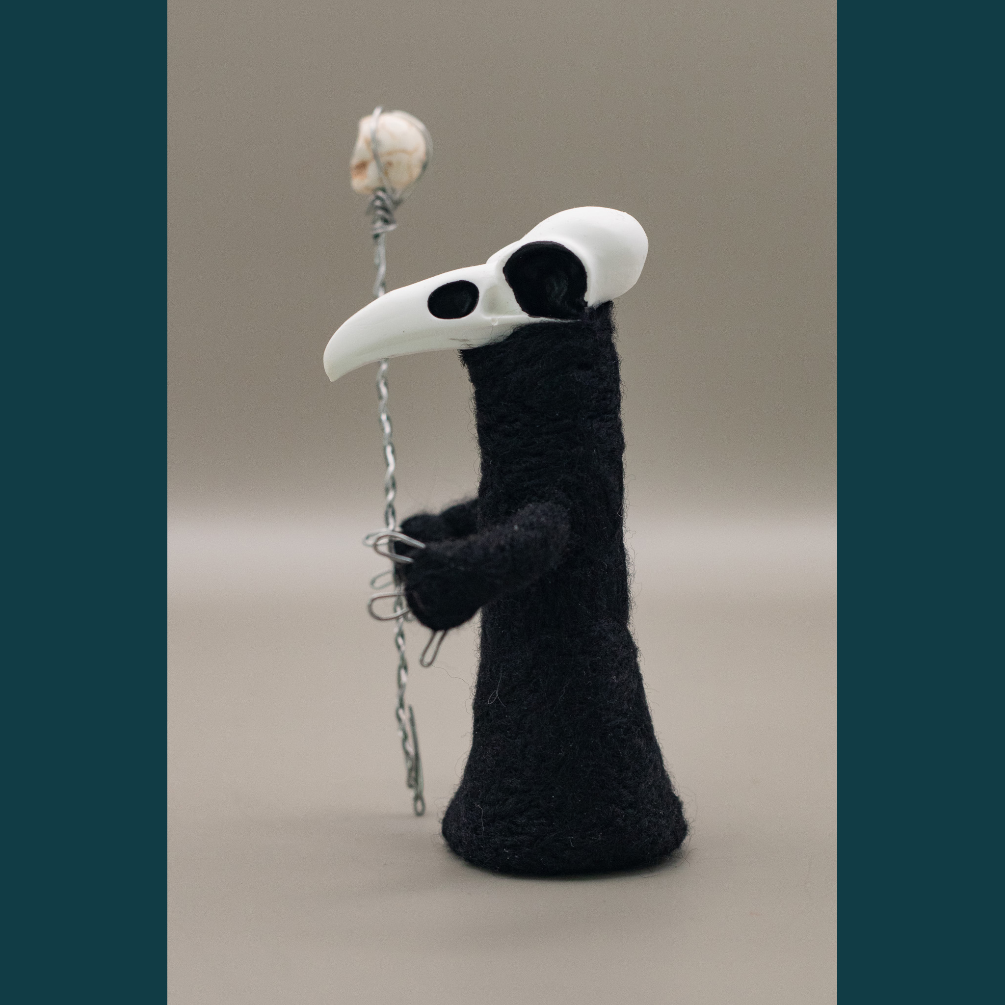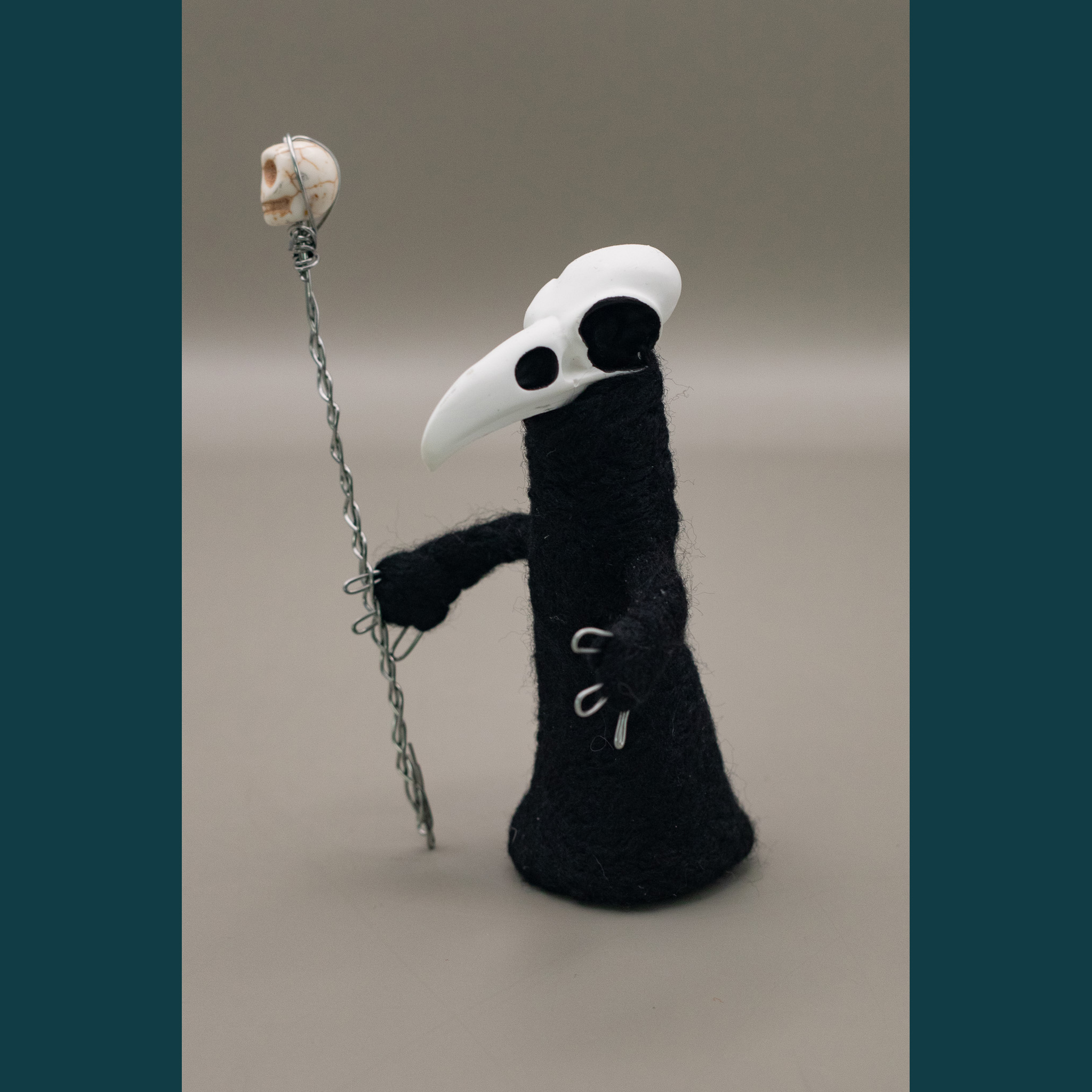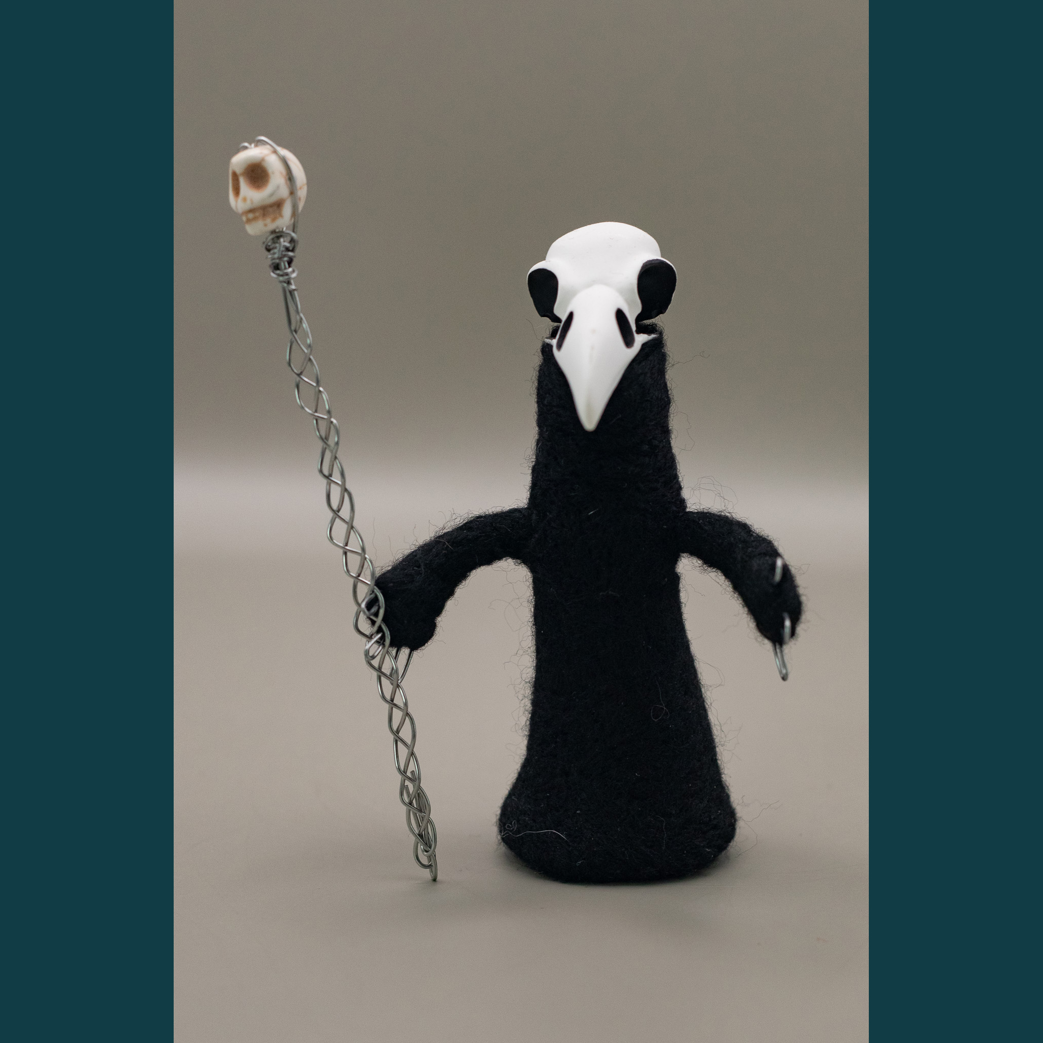 Feutrage à l’aiguille (à base de laine et/ou acrylique cardée), plâtre, fil metal, peinture acrylique – Modèle unique – Fait main